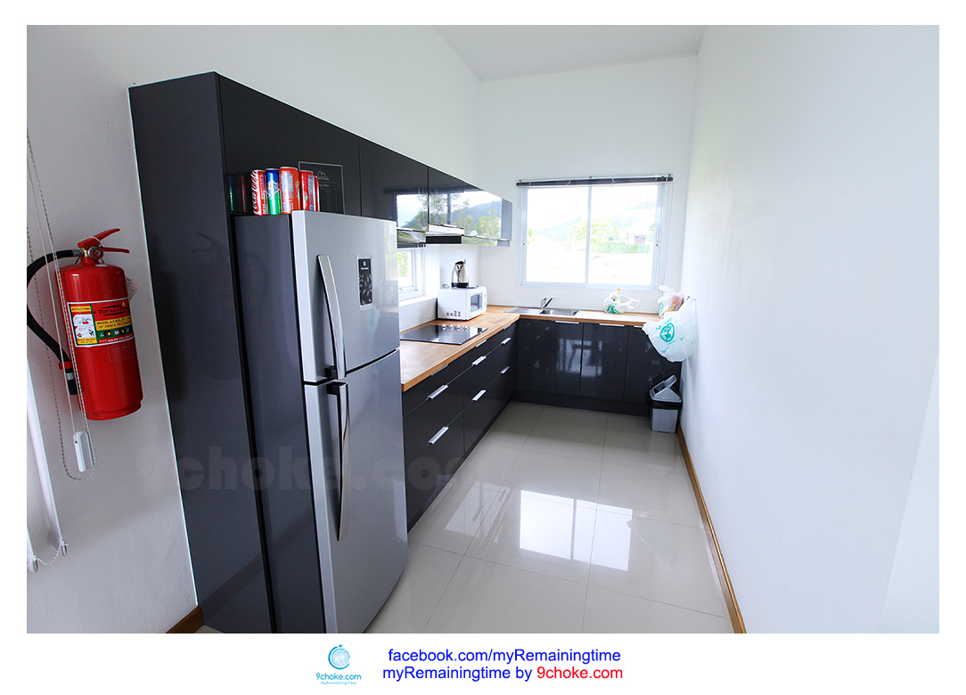 ติดกับโต๊ะกินข้าว ก็เป็นส่วนของห้องครัว นะครับ มีเตาไฟฟ้า มีไมโครเวฟ มีแก้ว มีช้อน จานชาม … อื่นๆนี่ ไม่แน่ใจ ไม่กล้าบอกว่ามีอะไรอีก แต่คุ้นๆมีกระทะ ตะหลิว อะไรพวกนี้ด้วยนะครับ เพราะเห็นแว๊บๆ ตอนเช้ามีการใช้งาน(ที่บ้านอีกหลัง) อิอิ