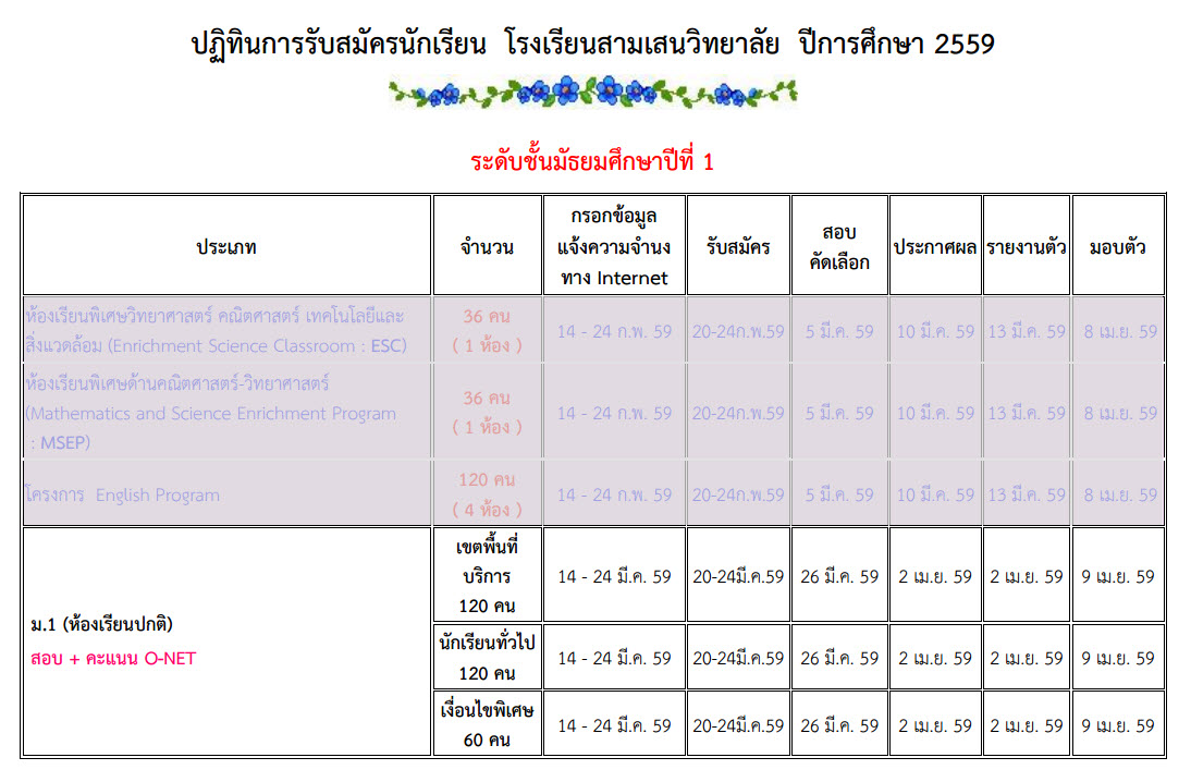 นั่นก็คือเริ่มกรอกข้อมูลแจ้งความจำนงก่อนได้เลยครับตั้งแต่วันที่ 14-24 มีนาคม 2559 และไปสมัครที่โรงเรียนในช่วงวันที่ 20-24 มีนาคม 2559 และสอบพร้อมๆกันกับโรงเรียนแข่งขันสูงอื่นๆ ในวันที่ 26 มีนาคม 2559